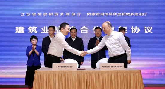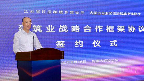 9月16日,內(nèi)蒙古自治區(qū)住房和城鄉(xiāng)建設(shè)廳與江蘇省住房和城鄉(xiāng)建設(shè)廳在呼和浩特舉行建筑業(yè)戰(zhàn)略合作框架協(xié)議簽約儀式。內(nèi)蒙古自治區(qū)副主席包鋼、江蘇省副省長費(fèi)高云出席儀式并見證簽約。
