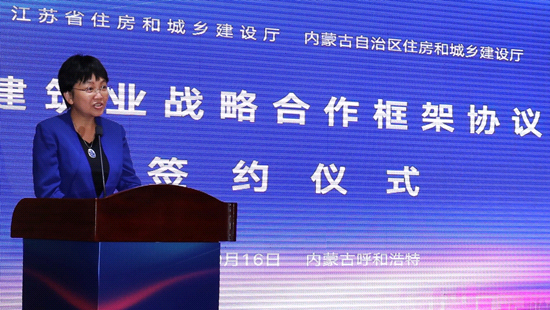 江蘇省政府副秘書長吳永宏,內(nèi)蒙古自治區(qū)政府辦公廳副主任孫利劍、內(nèi)蒙古自治區(qū)住房和城鄉(xiāng)建設(shè)廳副廳長揭新民以及兩省區(qū)住房和城鄉(xiāng)建設(shè)廳相關(guān)部門負(fù)責(zé)人、企業(yè)代表參加簽約儀式。