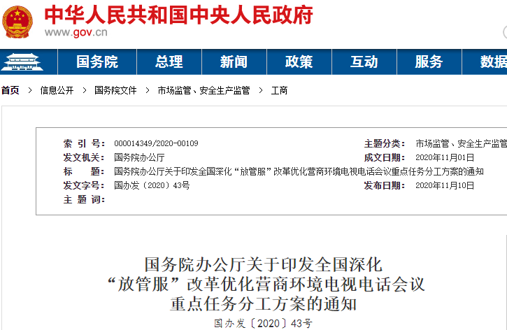近日,國務(wù)院辦公廳印發(fā)《全國深化“放管服”改革優(yōu)化營商環(huán)境電視電話會(huì)議重點(diǎn)任務(wù)分工方案》(以下簡稱《方案》),對下一階段深化“放管服”改革優(yōu)化營商環(huán)境工作作出部署。