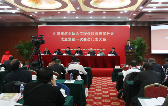 2017年1月16日,中國建筑業(yè)協(xié)會工程保險與擔(dān)保分會成立暨第一次會員代表大會在北京召開。住房城鄉(xiāng)建設(shè)部工程質(zhì)量安全監(jiān)管司副司長曾憲新、質(zhì)量處處長廖玉平,建筑市場監(jiān)管司招投標(biāo)處處長齊心,中國建筑業(yè)協(xié)會副會長兼秘書長吳濤、副秘書長李蓬和趙峰出席會議;來自各企事業(yè)單位的代表和新聞媒體的同志共200余人參加了會議。會議由中國建筑業(yè)協(xié)會副秘書長李蓬主持。