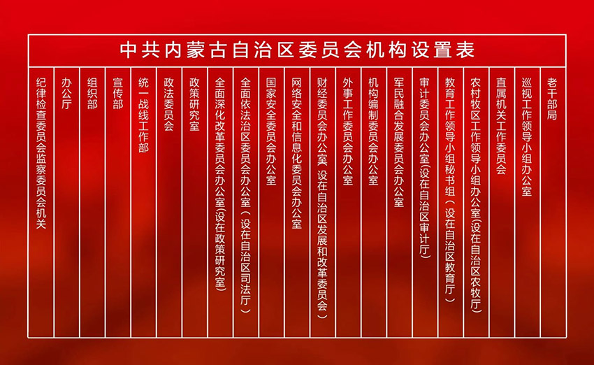 近日,黨中央、國(guó)務(wù)院批準(zhǔn)了《內(nèi)蒙古自治區(qū)機(jī)構(gòu)改革方案》(以下簡(jiǎn)稱《方案》)?!斗桨浮访鞔_了我區(qū)黨政機(jī)構(gòu)改革的總體部署、機(jī)構(gòu)設(shè)置等內(nèi)容,明確要求統(tǒng)籌推進(jìn)自治區(qū)人大、政協(xié)和群團(tuán)組織、事業(yè)單位等各項(xiàng)改革。
