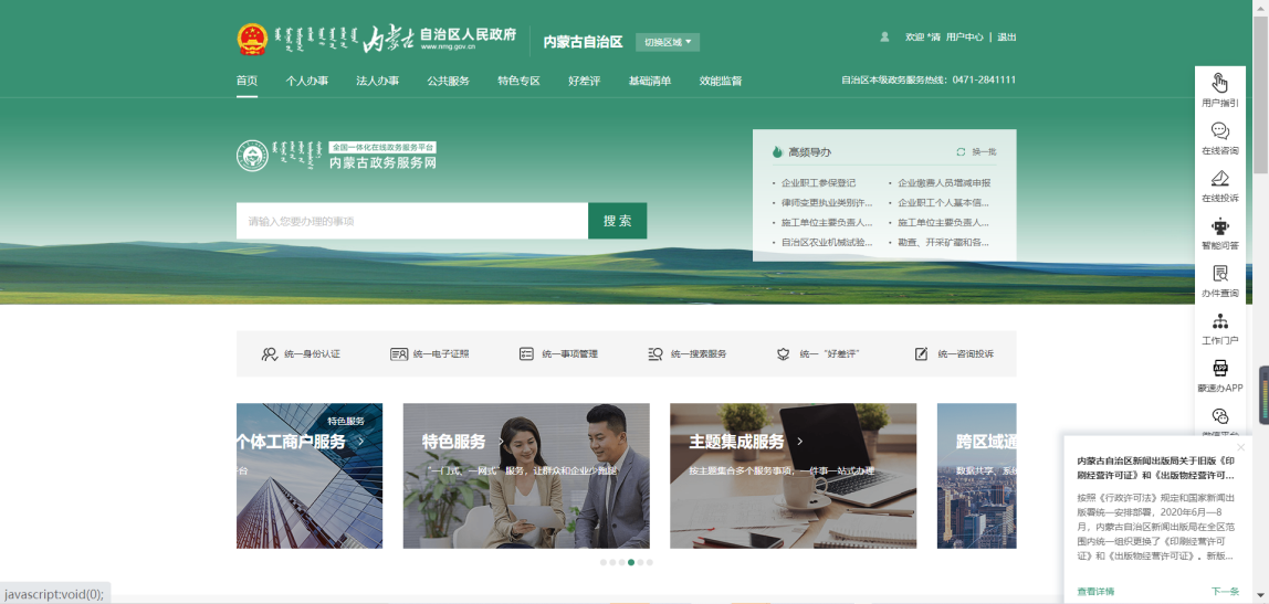 自治區(qū)住建領(lǐng)域電子證照系統(tǒng)是基于自治區(qū)政務(wù)服務(wù)網(wǎng)的功能使用的,需要對(duì)電子證照查詢及打印使用的用戶首先登陸政務(wù)服務(wù)網(wǎng);