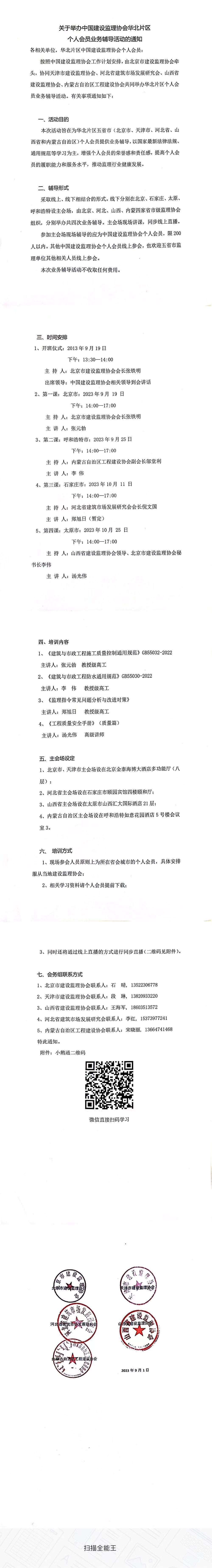 附件:1、《關(guān)于舉辦中國(guó)建設(shè)監(jiān)理協(xié)會(huì)華北片區(qū)個(gè)人會(huì)員業(yè)務(wù)輔導(dǎo)活動(dòng)的通知》