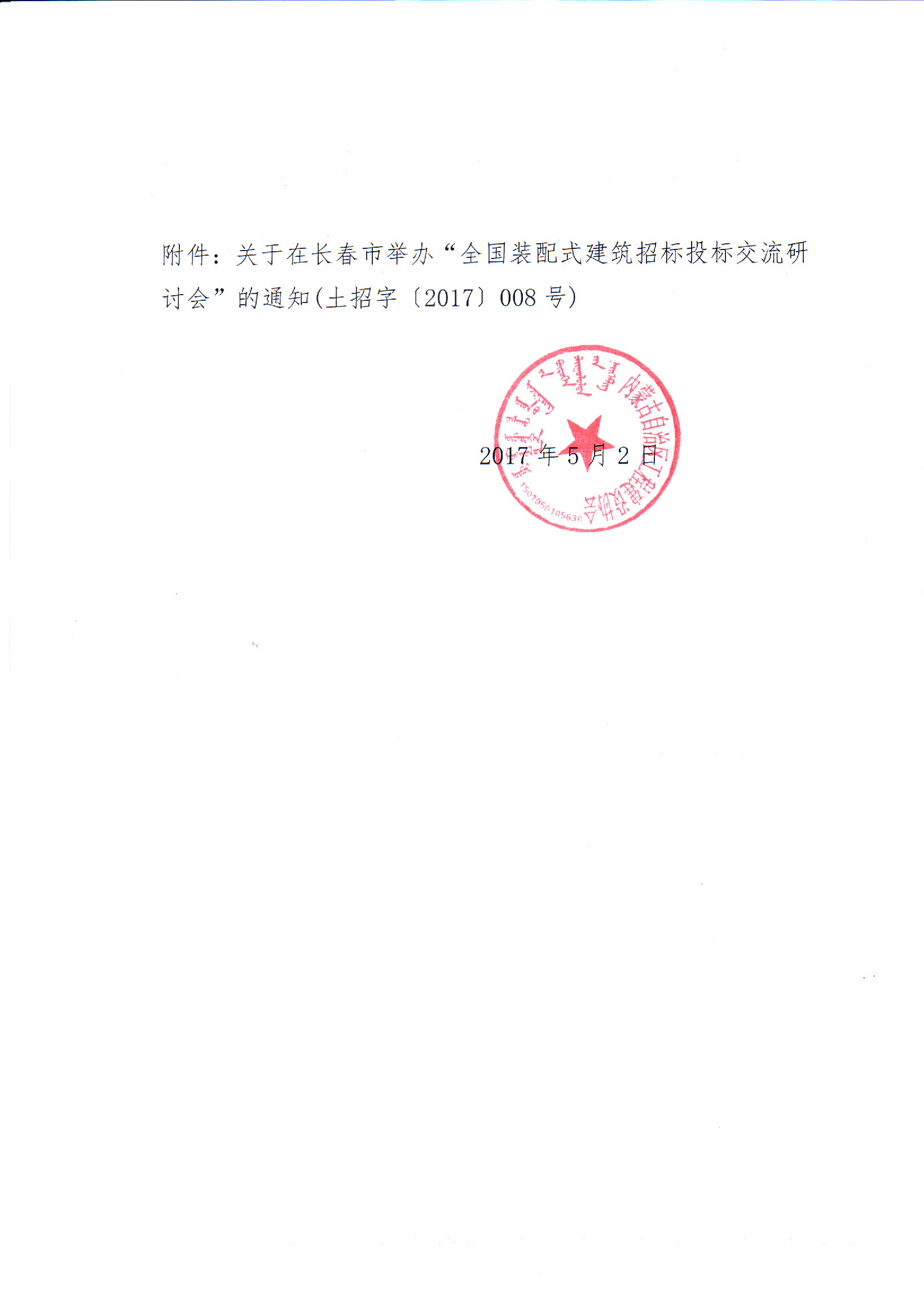附件:關(guān)于在長春市舉辦“全國裝配式建筑招標投標交流研討會”的通知(土招字{2017}008號).docx